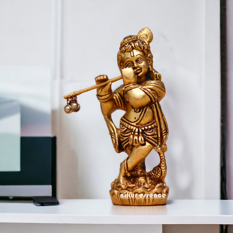 Antique Brass Krishna Pital ki Murti - 5.3 inches