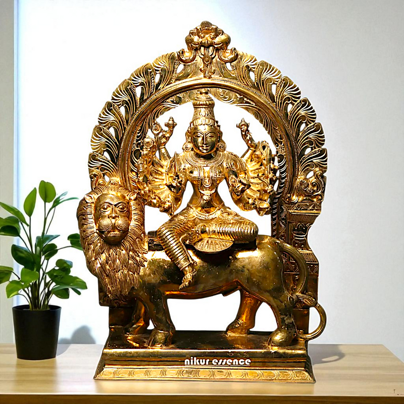 Big Durga Sherawali Maa Devi Seated on Lion with Blessing Bronze/Panchaloha idol - 27 Inches