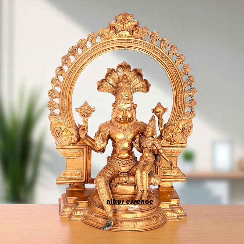 Big Narasimha Vishnu with Lakshmi Seated on kirtimukha throne Blessing Bronze/Panchaloha idol - 22 Inches