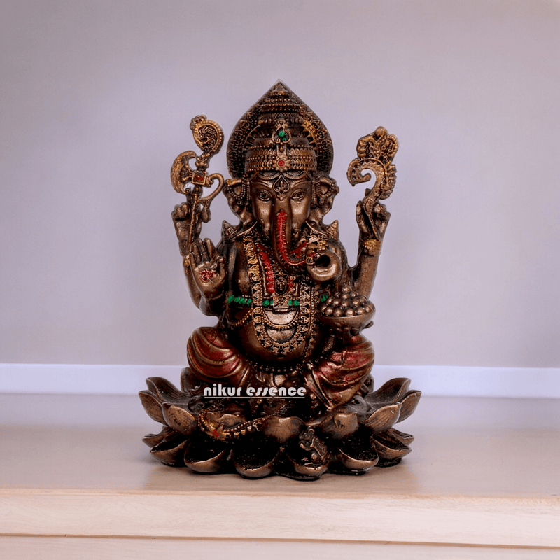 Bonded Bronze Ganesh sitting on lotus Nikur Essence - 4 inch