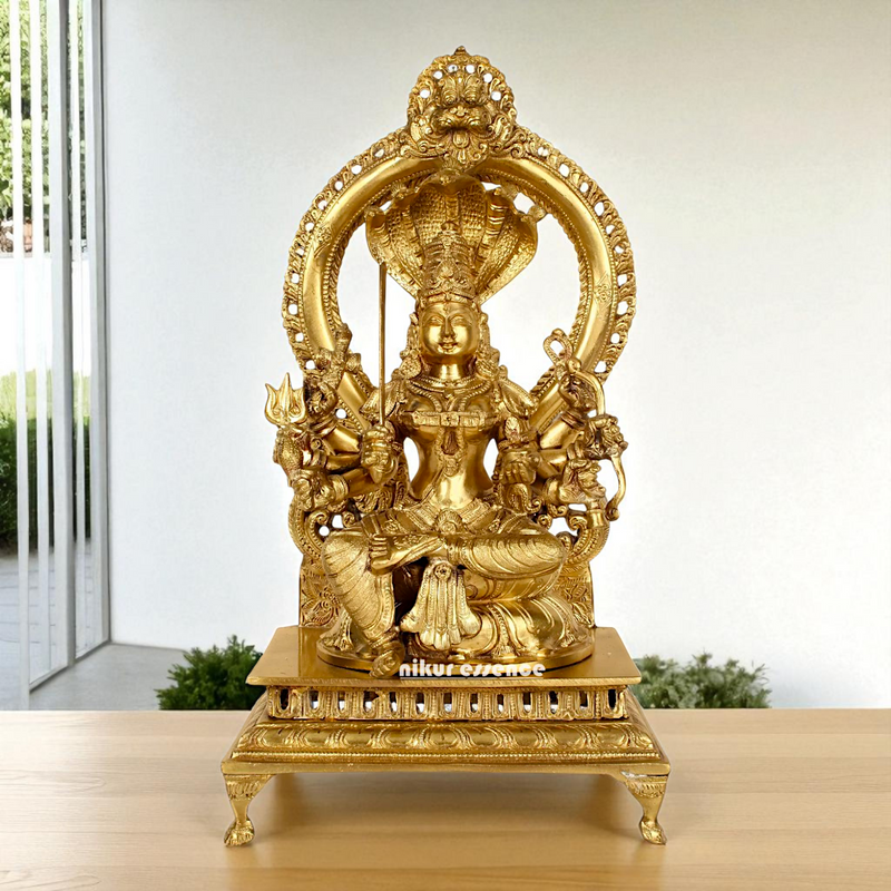 Bronze Mariamman Durga Devi Mata Seated on throne with sheshnag Panchaloha idol - 16 Inches