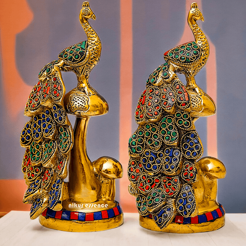 Buy brass 21.6 cm Peacock Statue with Glossy Finish - Elegant Handcrafted Sculpture