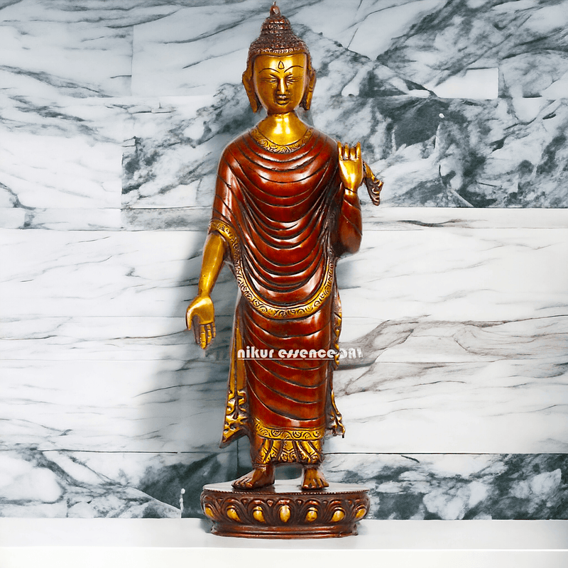 Buy Tibetan Buddhist Standing Lord Buddha Brass Statue , 15 Inches Tall for home