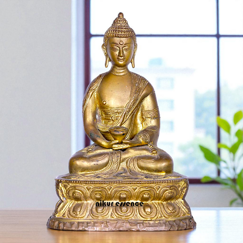 Lord Buddha seated with dhayan mudra Bronze Panchaloha idol - 8 Inches