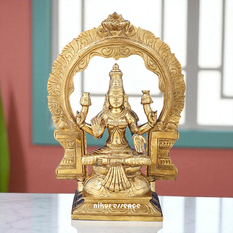 Dhan Lakshmi seated on kirtimukha throne with Blessing Bronze Panchaloha idol - 1 Feet