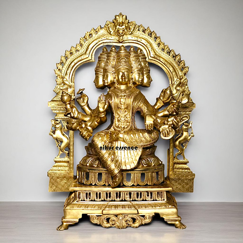 Goddess Gayatri Devi Maa Seated on throne kirtimukha Bronze/Panchaloha idol - 25 Inches
