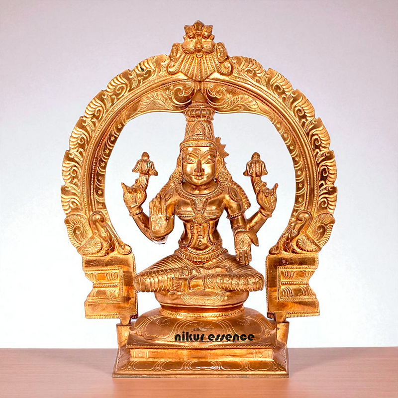 Goddess Lakshmi Mata Seated on kirtimukha throne with Four Armed Bronze/Panchaloha idol - 1 Feet