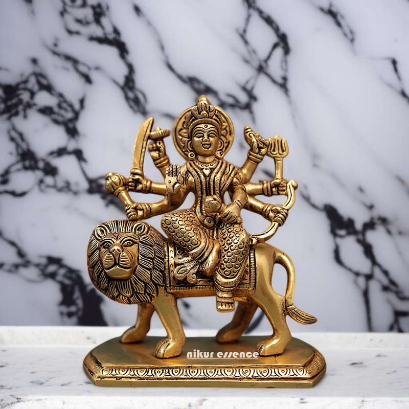 Goddess Sherawali Devi Mata seated on lion with Blessing Brass idol - 6 inches