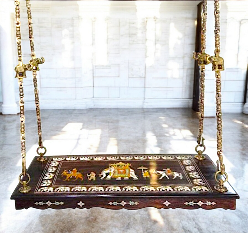 Handcrafted Rosewood Swing Plank – 4 feet Wooden Jhoola with 4 Solid Brass Chains & Ceiling Hooks | Luxury Oonjal for Home & Temple -Nikur Essence