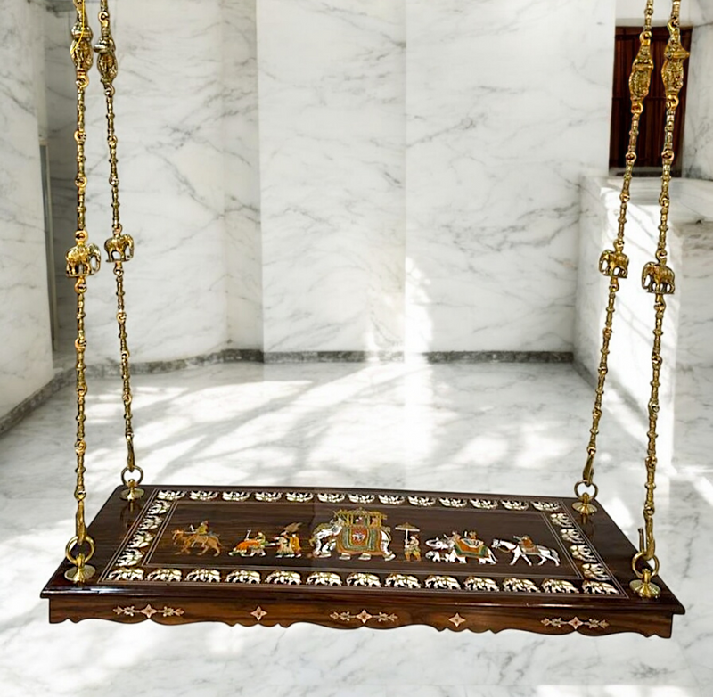 Handcrafted Rosewood Jhoola/oonjal – 5ft Traditional Wooden Swing with 7ft Brass Chains| Nikur Essence