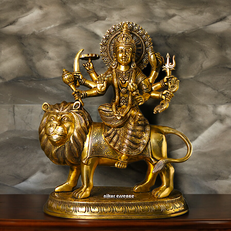 Large Handcrafted Durga Maa Brass Statue - Exquisite 35.5 cm Representation of Divine Feminine Power