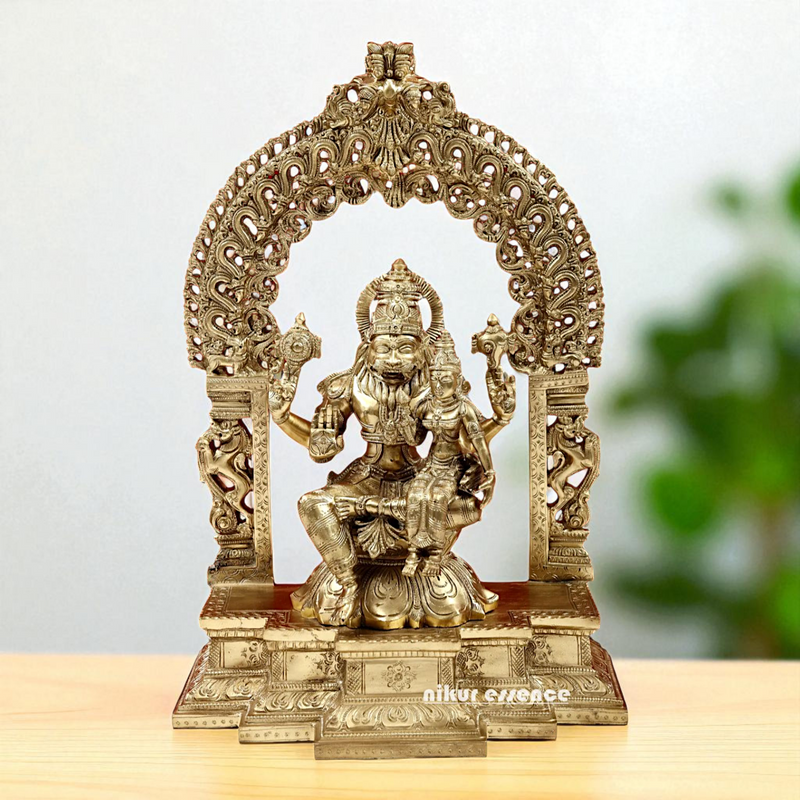 Lord Narasimha Vishnu with Lakshmi Seated on singhasan Bronze/Panchaloha idol - 18 Inches