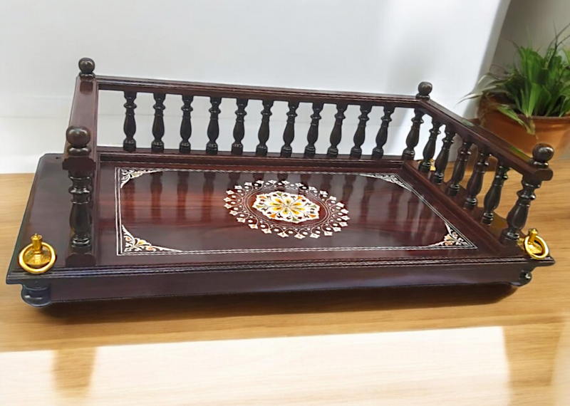 Rosewood Oonjal (Jhula/Swing) – 5ft Traditional Wooden Swing with 7ft Brass Chains & Exquisite Rangoli Inlay Work-Nikur essence