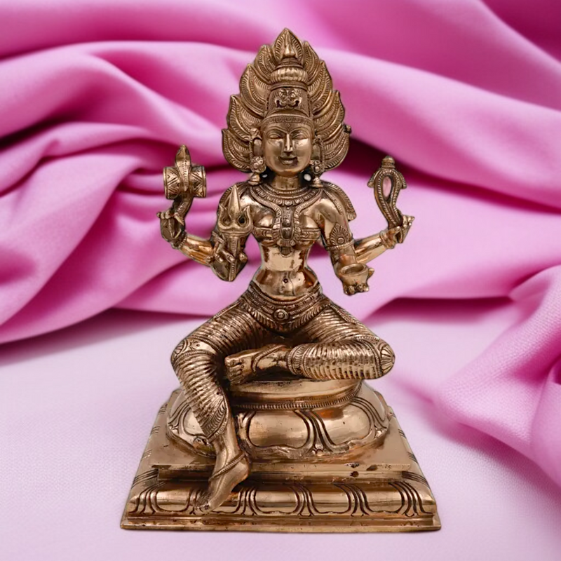 Mariamman Devi Blessing seated Panchaloha idol - 10.5 Inches