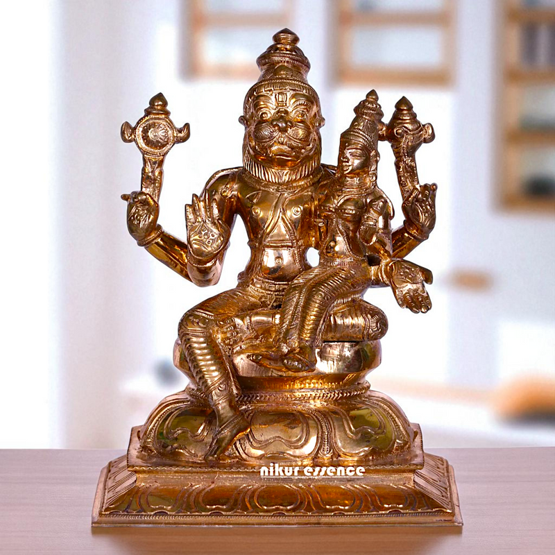 Narasimha Vishnu Bhagwan with Goddess Lakshmi seated Blessing Bronze/Panchaloha idol - 7 Inches