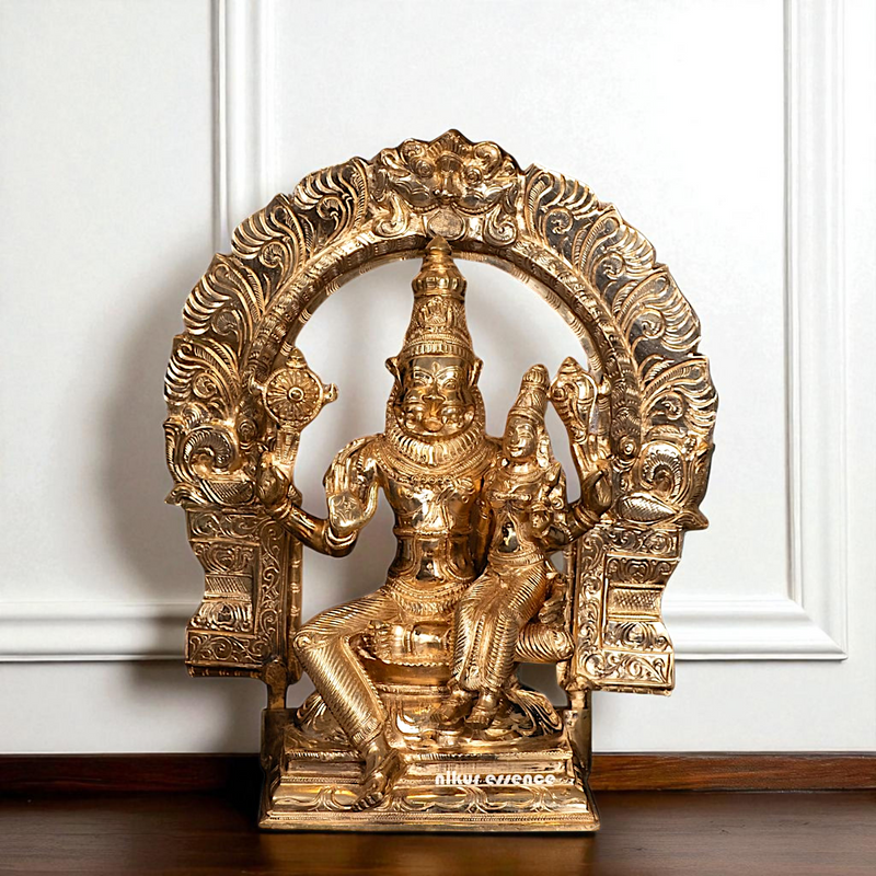Narasimha Vishnu with Lakshmi seated Panchaloha idol - 12 Inches