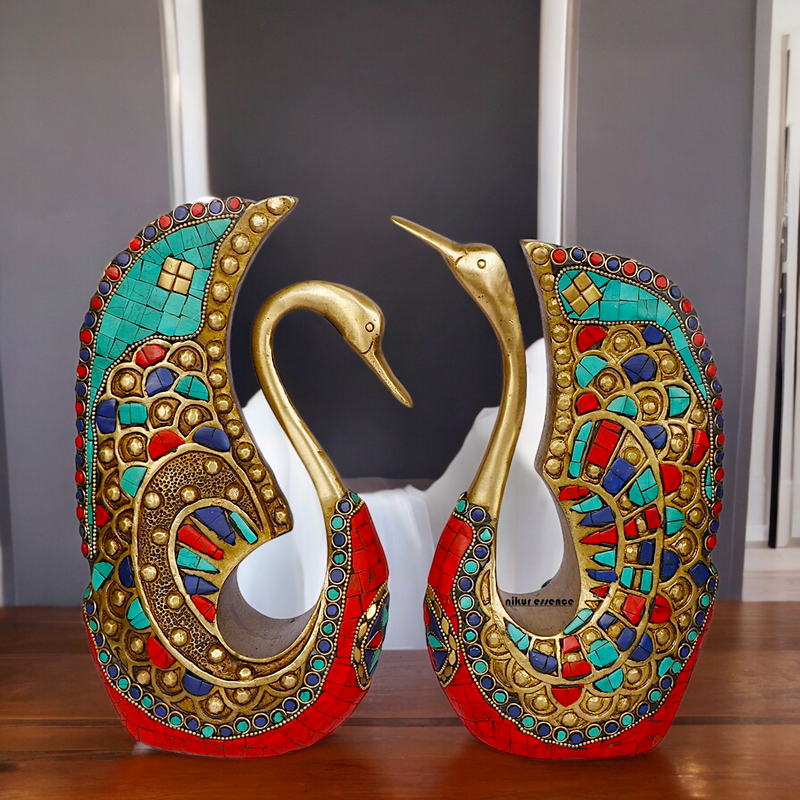 Online Swan Pair idol with Stone Work - 9.5 inches