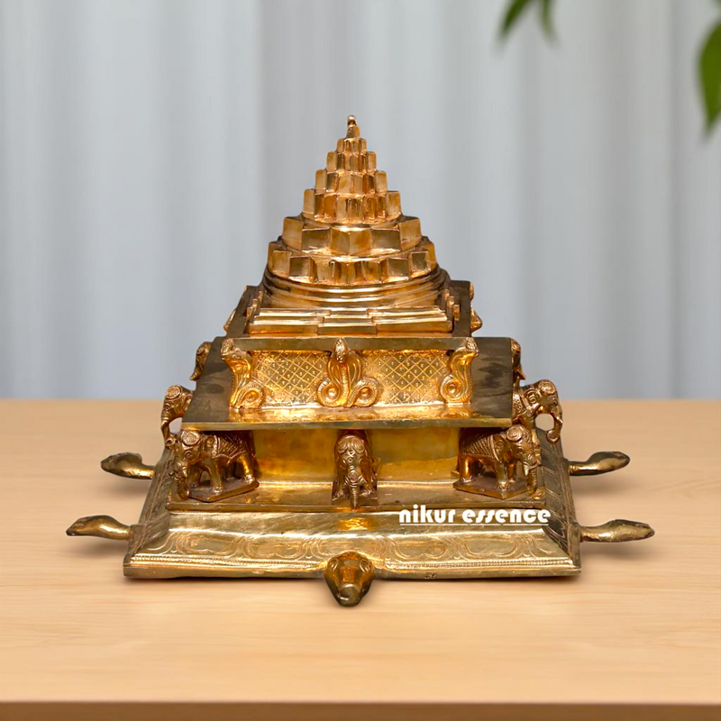 Panchaloha/Bronze Shri Yantra Tortoise Back small elephant idol - 17 Inches