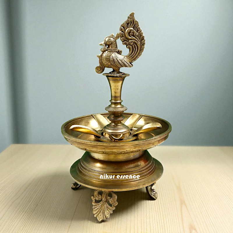 Peacock Diya wick lamp Bronze Panchaloha - 13 Inches