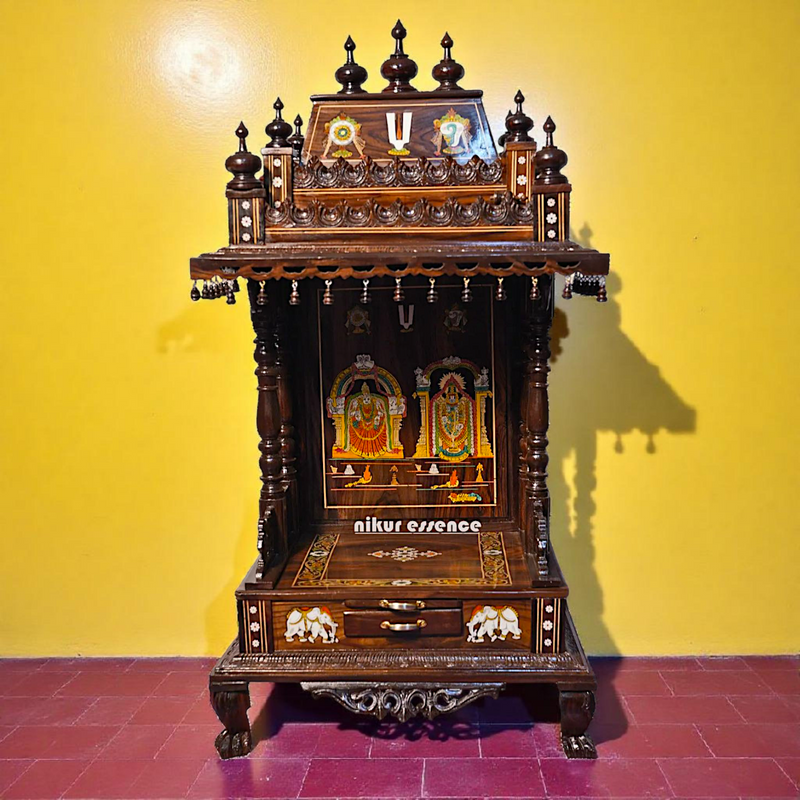 Premium Handcrafted Rosewood Temple with Drawer β Lord Venkateswara Carving Nikur Essence