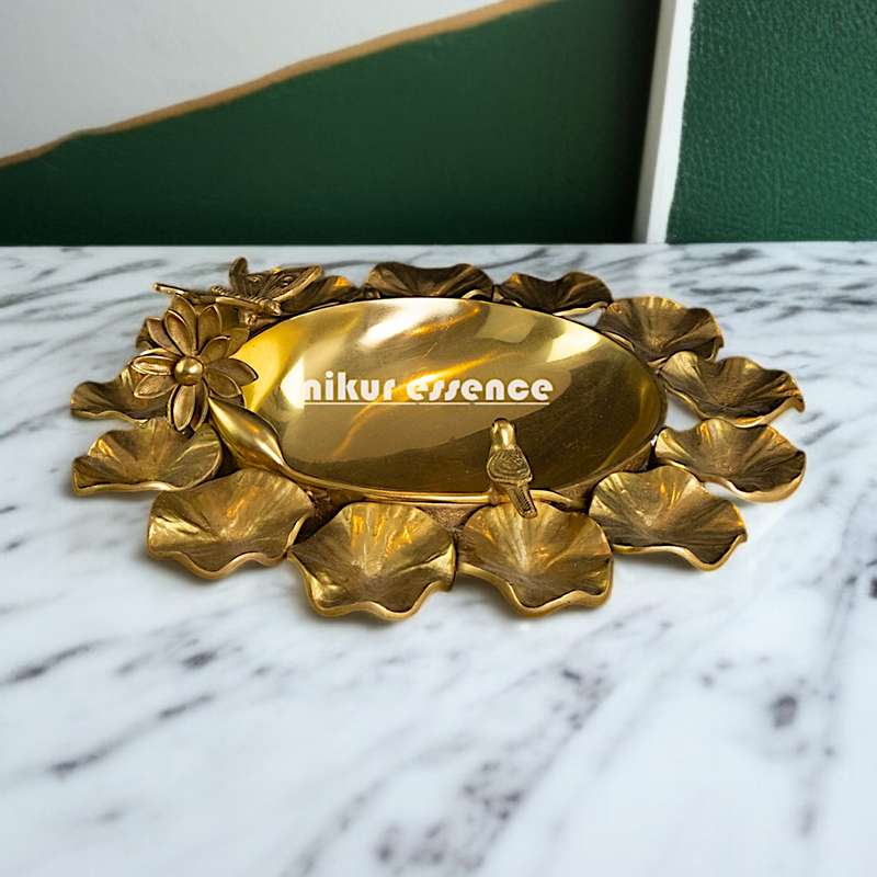 Pure Brass Urli with flower and Bird - 15 Inches