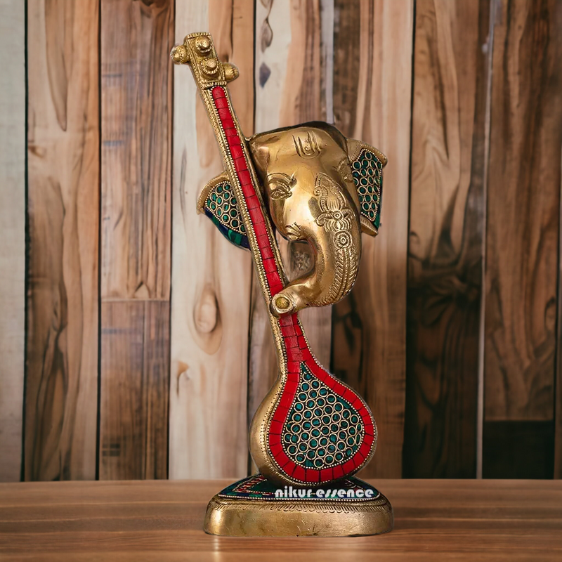 Shop Ganesh Face with Veena Brass Idol Stone Work - 11.5 inches