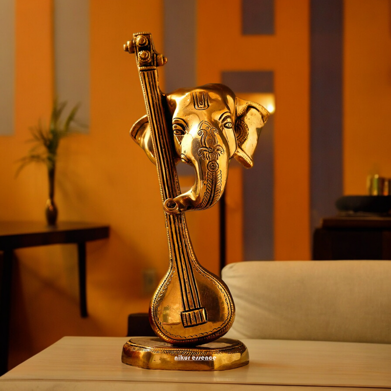 Shop Ganesh Playing Veena Solid Braas Idol - 11.5 inches