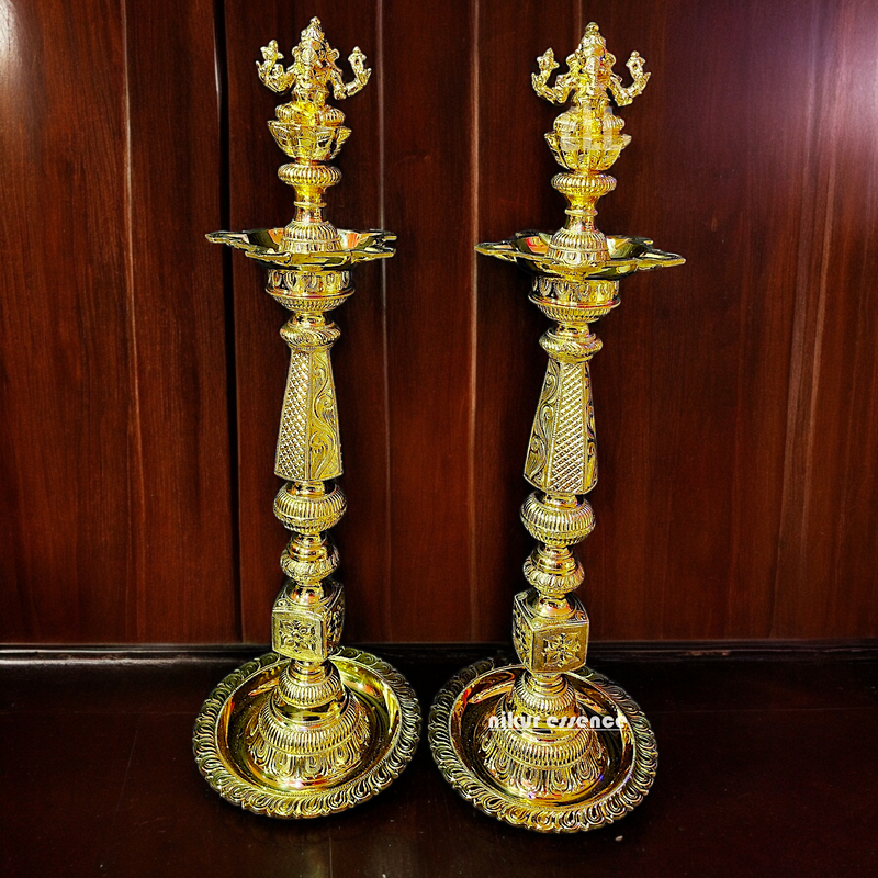 Shop Large Brass Pair Ganesha Diya Vilakku - 33 inches