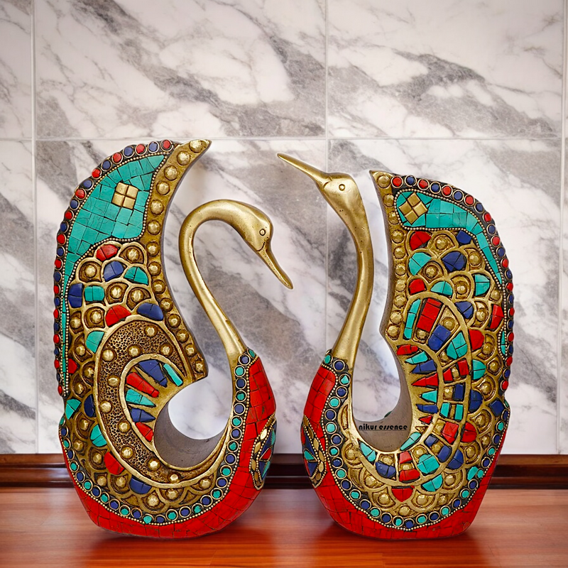 Shop Swan Pair Braas with Stone Work Idol - 9.5 Inch