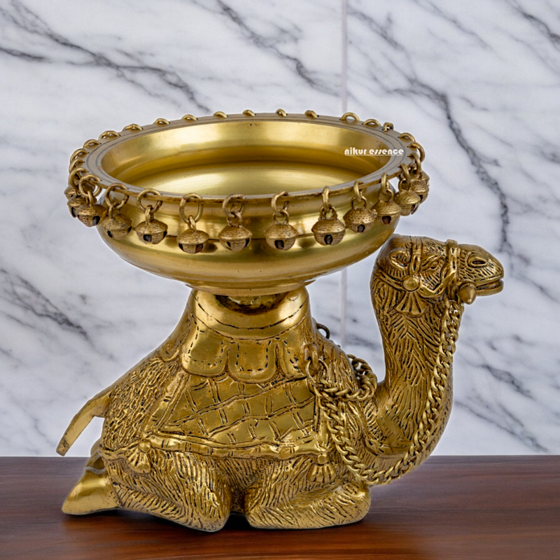 Solid Brass Camel Urli with Bells Ghungroo - 9.5 inch