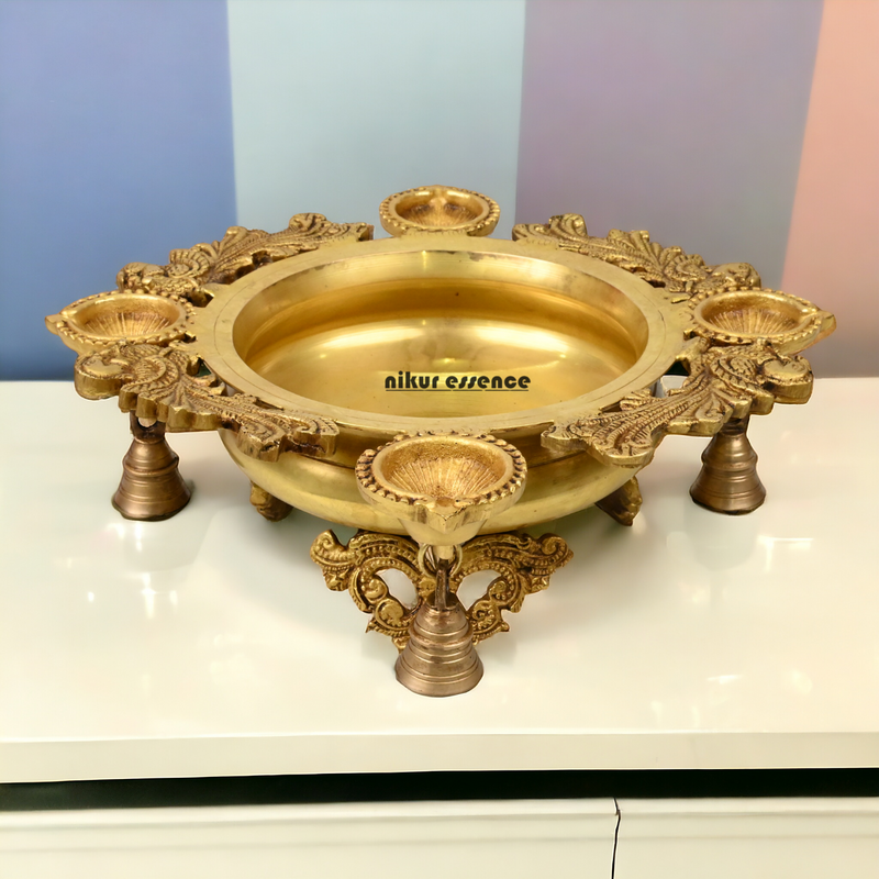 Solid Brass Urli with Bells goongru by Nikur Essence - 13 inches