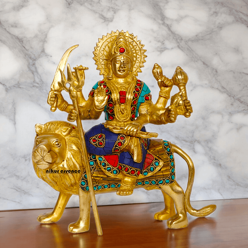 Superfine brass 24.1 cm Maa Durga Idol Sitting on Lion - Majestic and Detailed Divine Sculpture