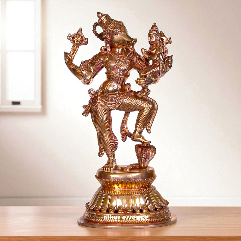 Varaha Vishnu Standing with Lakshmi Blessing Bronze/Panchaloha idol - 9 Inches