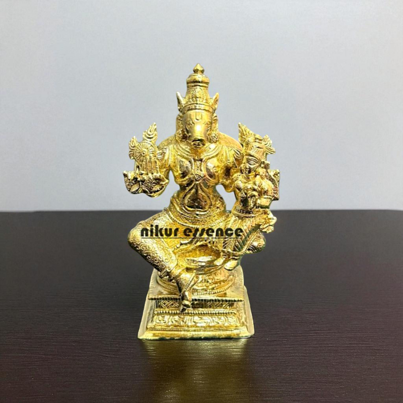 Vishnu varaha Bhagwan with Lakshmi seated Blessing Bronze/Panchaloha idol - 4.8 Inches